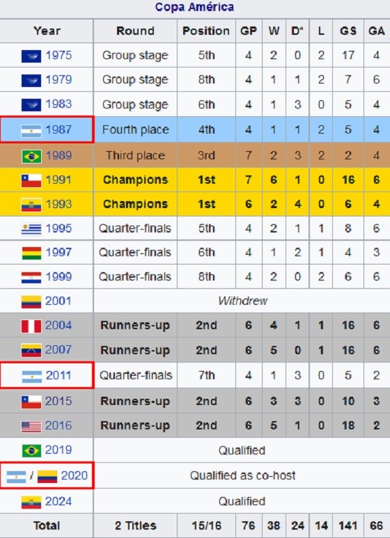 Usai kemenangan tersebut, juara Piala Dunia 1986 itu hanya mampu empat kali meraih posisi runner-up. Dua di antaranya terjadi secara beruntun, yaitu pada gelaran 2015 dan 2016.