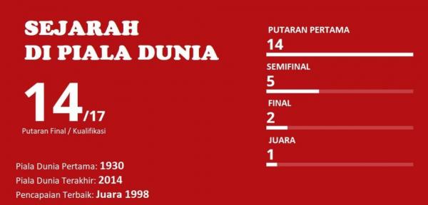 Di Rusia nanti, Prancis tentu berharap bisa melaju lebih jauh ketimbang empat tahun lalu saat mereka terhenti pada perempat final di Brasil. Kala itu, pasukan Didier Deschamps kalah 0-1 dari Jerman yang akhirnya keluar sebagai juara.
