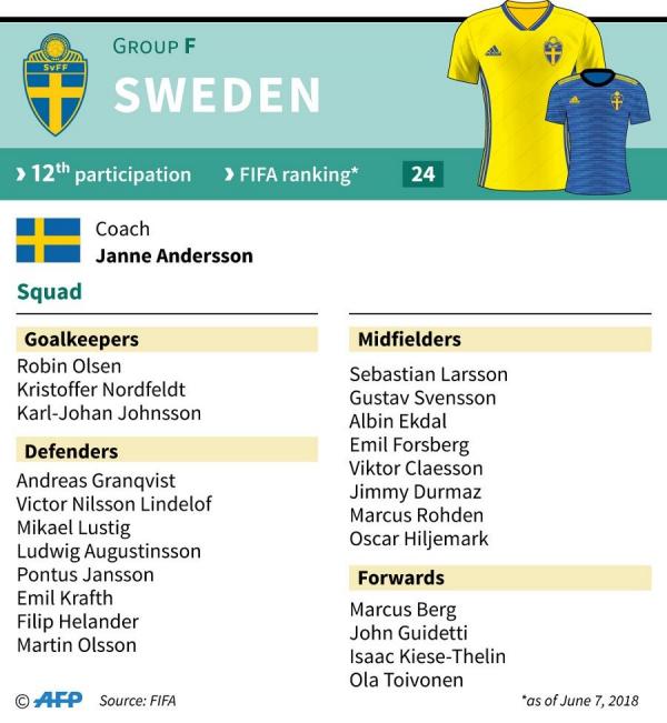 Dengan materi pemain yang dimiliki saat ini, Swedia harus bahu-membahu untuk lolos dari penyisihan grup. Sebab di Grup F, Blagult akan bertemu juara bertahan Jerman. Selain itu, mereka juga akan menghadapi tim yang berpengalaman di Piala Dunia seperti Meksiko serta tim tangguh Asia Korea Selatan.