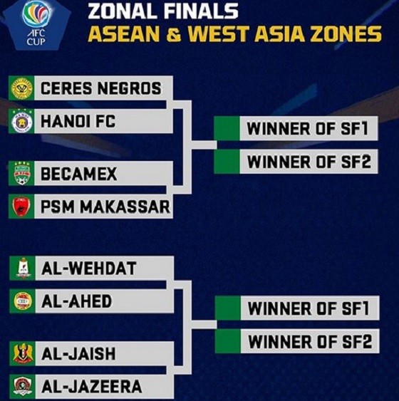 Berikut ini semifinal Piala AFC Zona Asean dan Asia Barat.