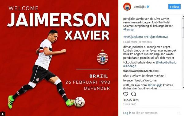 Direktur Utama Persija Gede Widiade langsung yang memperkenalkan bek 27 tahun itu. Dia diharapkan bisa menjadikan pertahanan klub ibu kota itu sulit ditembus. “Jaimerson kami kontrak semusim,” kata Gede, dikutip situs resmi klub.