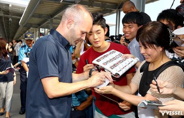 Ketika sampai di Bandara, Iniesta langsung disambut sekitar 300 penggemar yang sudah setia menuggu kedatangannya. Sambil melemparkan senyuman, pesepak bola yang baru saja menyatakan pensiun dari timnas Spanyol itu juga tak segan untuk memberikan tanda tangannya.