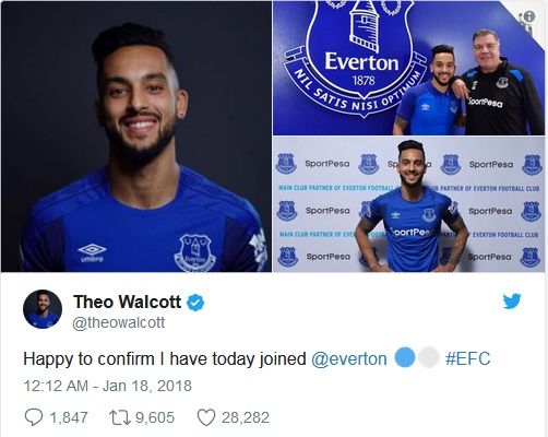 Kini, pemilik 47 caps di tim nasional Inggris itu berharap bisa mengembalikan performa terbaiknya bersama The Toffees dan bisa kembali diundang membela negaranya.“Saya sangat bangga pada apa yang saya lakukan musim lalu, mencetak 19 gol. Saya ingin membawa itu ke Everton. Saya ingin menjadi bagian amunisi serangan di sini,” tutur pemain bertinggi 176 cm itu. “Itu semua tergantung kerja keras, dan saya pikir pelatih di sini akan mendapatkan yang terbaik dari semua pemain. Saya hanya ingin bermain sepak bola dan menikmatinya lagi, saya merasa langkah ini akan membuat itu terjadi,” kata winger yang akan mengenakan nomor punggung 11 di Everton itu.Kehadiran Walcott disambut suka cita Pelatih Everton Sam Allardyce. Pekan lalu, arsitek yang biasa disapa Big Sam itu memang terang-terangan membidik winger yang satu ini karena kagum dengan kecepatannya. Dia yakin, amunisi barunya itu akan sangat bermanfaat untuk strateginya memainkan serangan sayap.“Saya senang. Ada sedikit persaingan dengan beberapa klub, tapi saya pikir setelah kami menetapkan ambisi klub dan ambisi saya kepadanya, dia termotivasi untuk datang ke sini dan merasa segar dalam pikirannya dengan tantangan baru yang dapat dia hadapi sendiri,” Allardyce memaparkan di situs resmi klub.Walcott menjadi rekrutan kedua Everton pada bursa transfer Januari ini. Sebelumnya The Toffees mendatangkan striker Turki Cenk Tosun yang direkrut dari Besiktas dengan banderol 27 juta poundsterling. Editor: Abdul Haris