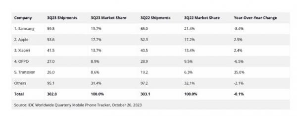 Menurut IDC, pengiriman smartphone turun 0,1 persen ke 302,8 juta unit di Q3. Hal ini disebabkan oleh sejumlah faktor, termasuk lemahnya permintaan, inflasi, dan ketegangan geopolitik.