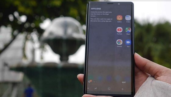 Seperti smartphone Samsung kebanyakan tahun ini, Galaxy Note 9 dibekali dengan Infinity Display 6.4 inci yang dibalut dengan Corning Gorilla Glass 5 dengan layar melengkung di bagian sisi kanan dan kirinya baik depan maupun belakang.