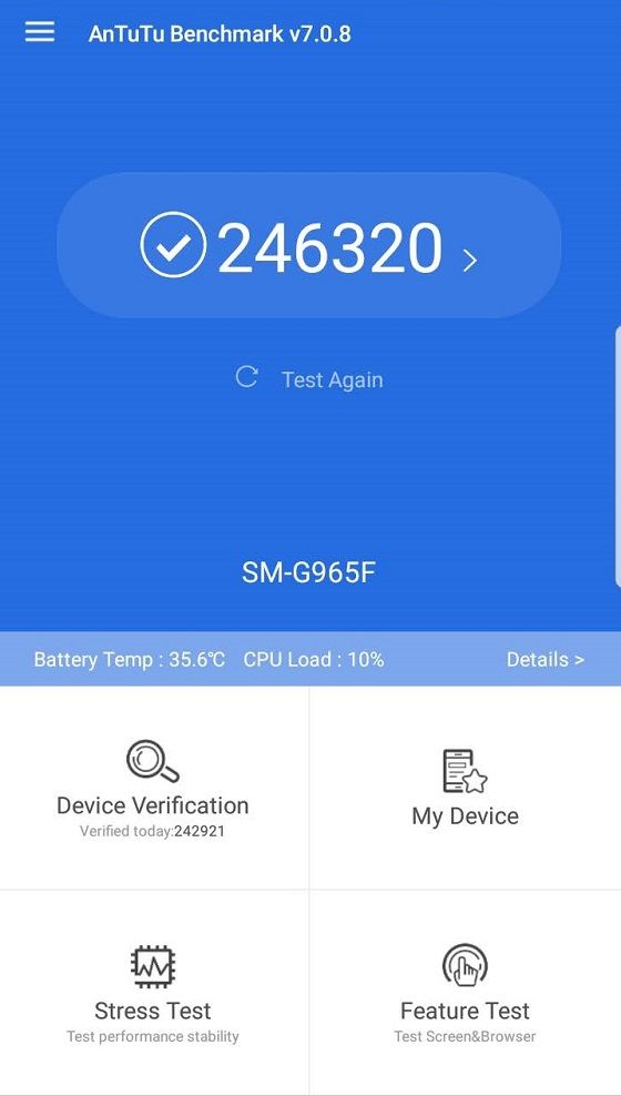 Pada AnTuTu, Galaxy S9 Plus berhasil mencapai skor 246320. Sedangkan di Geekbench, suksesor Galaxy S8 ini berhasil mencapai skor single-core 3731 dan multi-core 8795.