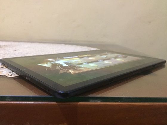 Di bagian belakang, terlihat Galaxy Tab S4 ini dibalut dengan kaca sehingga membuatnya terlihat elegan. Namun, bagian belakang ini terkadang cepat kotor karena meninggalkan bekas tangan. Masih di bagian belakang, Anda akan menemukan single kamera di pojok kiri atas yang di sampingnya ditemani oleh flash LED.