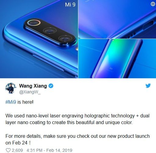 Produsen smartphone biasanya cenderung menunggu event pengumuman resmi untuk mengungkapkan wujud produk baru mereka. Namun, dalam kasus Xiaomi, tampaknya mereka memutuskan untuk mengungkapkan perangkat (Mi 9) sebelum event berlangsung.