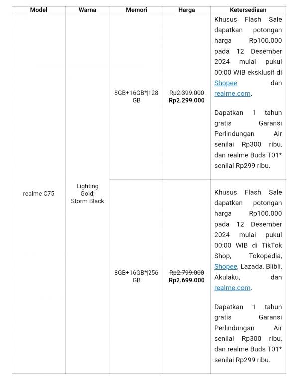Spesifikasi Realmi C75