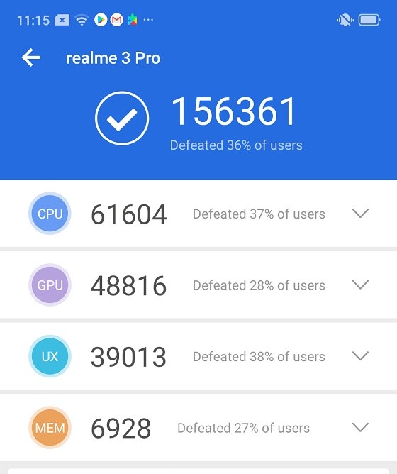 Tak hanya digunakan untuk keseharian dalam menguji smartphone ini, iNews.id juga mencoba mengukurnya dengan benchmark seperti AnTuTu. Hasilnya, benchmark menunjukkan skor Realme 3 Pro mencapai 156361.
