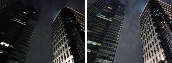 (Foto malam hari, kanan dengan Night Scape dan kiri tanpa Night Scape)