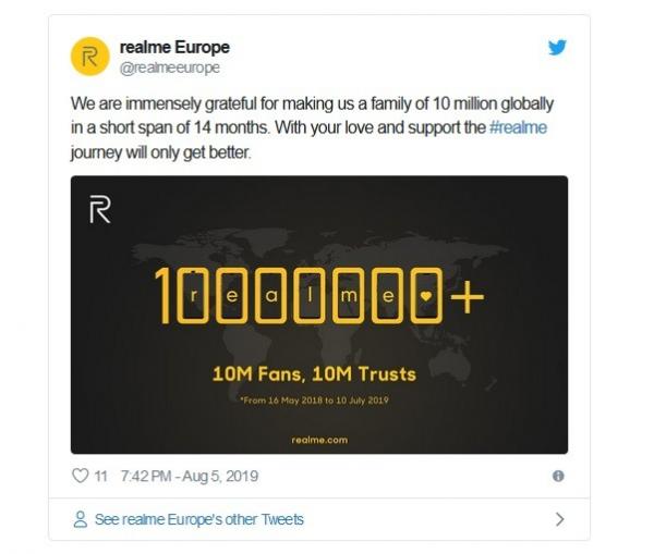 Mengutip Android Authority, Rabu (7/8/2019), Realme baru saja mengumumkan perusahaannya mencapai 10 juta pengguna sejak awal Mei 2018 hingga Juli 2019. Angka 10 juta terbilang besar untuk merek baru.