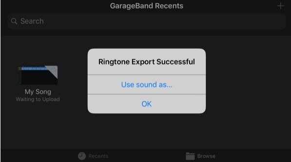 Jika tidak menetapkan ringtone baru dari dalam GarageBand, Anda bisa mengaturnya kapa saja. Masuk ke aplikasi Setting, pilih Sounds, dan selanjutnya tap Ringtone. Ringtone buatan Anda akan muncul di bagian atas daftar.
