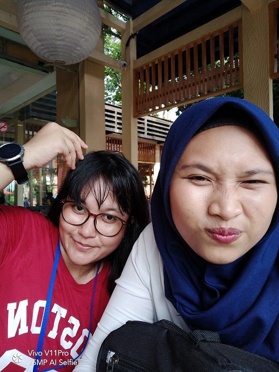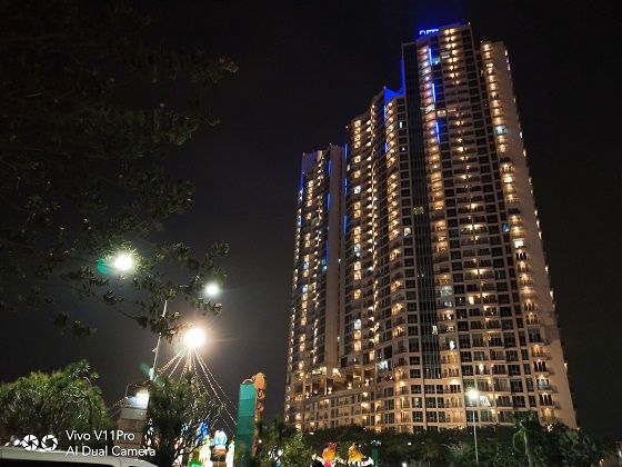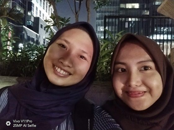 Beralih ke depan, V11 Pro dibekali dengan kamera 25 MP dengan aperture f/2.0. Berkat kamera itu, tembakan selfie bisa menjadi lebih cantik, bahkan tanpa menggunakan mode face beauty. Saat selfie di malam hari, gambar yang dihasilkan juga cukup baik meski jika diperhatikan dengan seksama terlihat sedikit noise.
