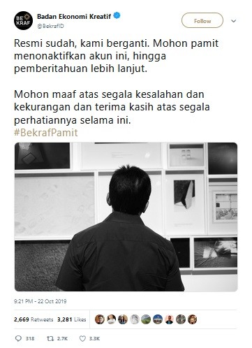Bekraf Pamit di Twitter dan Instagram, Warganet Sedih