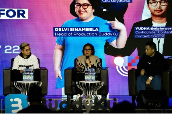 “Momentum yang gak mungkin sering jadi content creator, memang sulit untuk memulai karena banyak content creator yang sudah memulai duluan. Kalau kita baru mulai pasti jiper karena sulit, tapi kita bisa lihatnya ke 10 tahun kedepan,” ujar Delvi Sinambela, Head of Production BuddyKu.