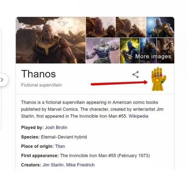 Setelah itu, Anda akan melihat ikon gauntlet Thanos di sudut kanan hasil penelusuran. Tap ikon gauntlet tersebut dan snap Thanos ala Google pun dimulai.