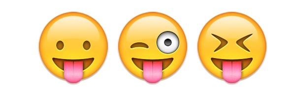 Face With Stuck-Out Tongue, Face With Stuck-Out Tongue And Winking Eye, dan Face With Stuck-Out Tongue And Tightly-Closed Eyes digunakan secara bergantian dengan Winking Face menunjukkan humor.