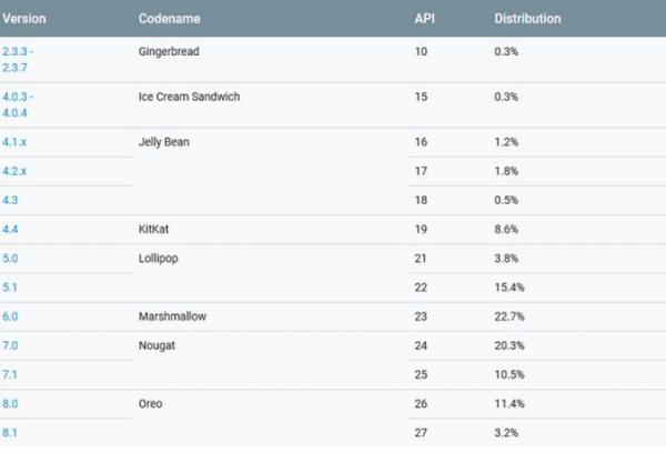 Android 8.0 dan 8.1 Oreo bisa ditemukan pada 14.6 persen perangkat Android, naik dari 12,1 persen di laporan terakhir. Mengingat jumlah distribusi Android Oreo yang tidak terlalu besar, wajar rasanya jika Android 9.0 Pie belum banyak mendominasi.
