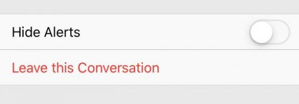Dengan mengetuk tombol Info akan membawa Anda ke bagian detail. Cukup pilih 'Leave this Conversation' di bagian bawah layar dan Anda akan dihapus.