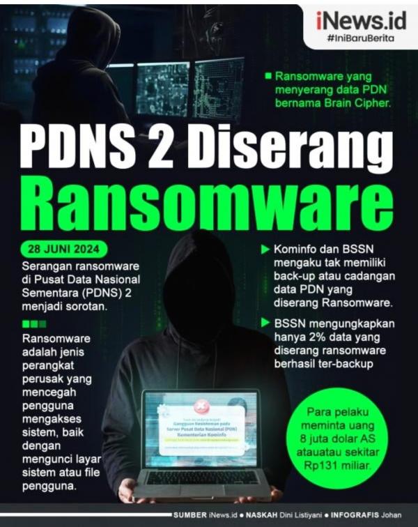 Persoalannya, insiden ini ternyata tak sesederhana yang dibayangkan. PDNS2 bukan sekadar terganggu, tapi belakangan diketahui limbung dihajar serangan malware ransomware.