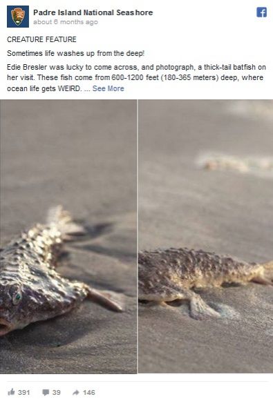 Bresler tidak tahu jenis ikan tersebut saat pertama kali melihatnya. Jadi, dia bergegas untuk mengambil potret makhluk tersebut. Foto-foto yang diambil Bresler dikirim ke pejabat di Padre Island National Seashor, yang memutuskan makhluk tersebut merupakan batfish berekor tebal.