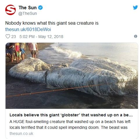 Pada Mei lalu, seekor makhluk laut raksasa dengan rambut lebat ditemukan di pantai San Antonio, Filipina. Makhluk tersebut dijuluki sebagai globster.