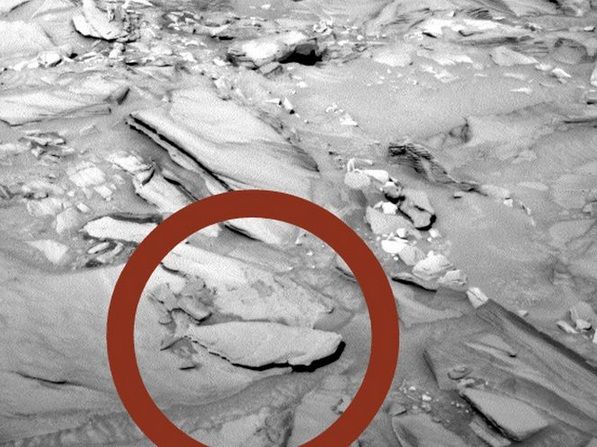 Objek aneh yang tertangkap di Mars lainnya ialah batu berbentuk ikan. Rover Curiosity menangkap formasi yang tak biasa ini pada kamera dan penggemar alien merasa senang karenanya. NASA sendiri memiliki pendapatnya sendiri tentang bentuk aneh ini.