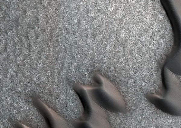 NASA mempublikasikan citra Mars Reconnaissance Orbiter pada 2018 dengan judul dramatis "The Case of the Martian Boulder Piles". Gambar ini berisi serangkaian tumpukan batu yang sangat teratur. Para ilmuwan NASA mengemukakan, tumpukan yang rapi bisa disebabkan oleh proses embun beku dengan siklus beku dan mencair mendorong bebatuan menjadi bentuk rapi. Proses serupa telah diamati di Bumi.