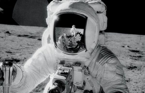 Di Bumi, orang terobsesi dengan selfie menggunakan cermin kamar mandi. Di Bulan, astronot Charles Pete Conrad menangkap dirinya tercermin di helm sesama astronot Alan Bean. Gambar ini diambil selama misi Apollo 12 pada 1969 saat Bean mengumpulkan sampel tanah Bulan.