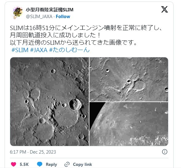 JAKARTA, iNews.id - Lander Jepang Smart Lander for Investigating Moon (SLIM) telah memancarkan kembali gambar pertama permukaan Bulan. Pancaran kembali setelah lander tiba di orbit mengelilingi Bulan di Hari Natal.