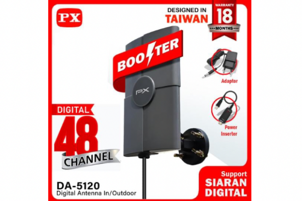 Perkenalkan, Digital Indoor & Outdoor Antenna DA-5120 dari PX yang dapat digunakan di dalam maupun di luar ruangan yang didesain spesial untuk sistem HD Digital TV di Indonesia. Dengan penerimaan sinyal yang baik serta tingkat sensitivitas yang tinggi, antena ini juga mudah dipasang baik secara horizontal maupun vertikal. Miliki produk ini seharga Rp145.000 saja dari Rp449.000.