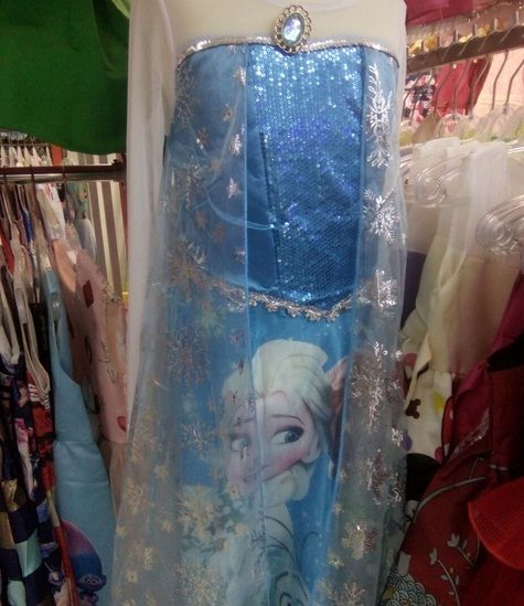 Baju princess dengan tokoh kartun Elsa dalam film Frozen, juga menjadi incaran anak-anak perempuan. Baju gaun panjang ini dibuat menyerupai gaun putri Elsa. Didominasi warna biru, gaun menampilkan gambar Elsa di bagian depan. Harga yang dijual sekitar Rp200.000-Rp300.000.