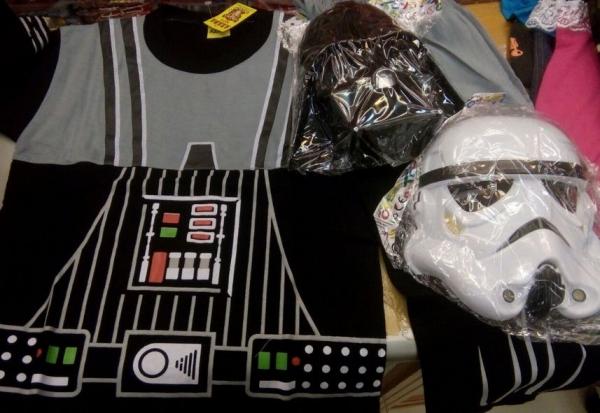 Baju dengan kostum Star Wars menjadi pilihan favorit anak laki-laki. Baju dengan bahan kaus ini dijual lengkap satu pasang dengan celana. Selain itu, ada topeng yang dijual bersamaan dengan baju. Harga yang ditawarkan untuk satu set baju dan topeng sekitar Rp85.000-Rp125.000.