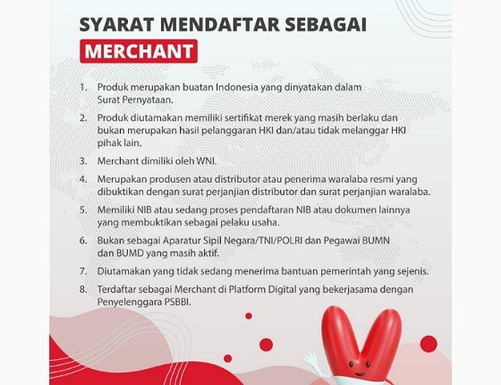 8. Terdaftar sebagai Merchant di Platform Digital yang bekerjasama dengan Penyelenggara PSBBI.