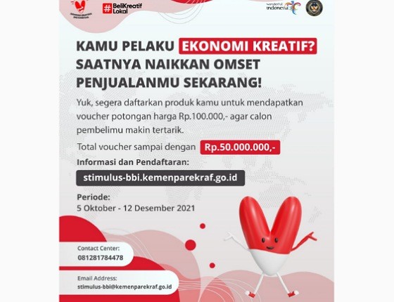 JAKARTA, iNews.id - Membantu memulihkan ekonomi Indonesia di masa pendemi, Kementerian Pariwisata dan Ekonomi Kreatif (Kemenparekraf) menebar stimulus dengan total Rp50 juta terhadap UMKM. Langkah diambil demi meningkatkan kenaikan omset bagi para pelakunya.