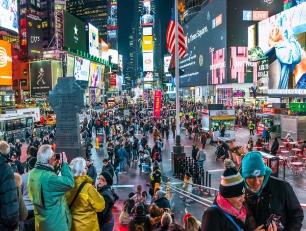 New York Times Square selalu ramai dikunjungi turis baik itu siang atau malam hari. Menurut situs resmi Times Square, lebih dari 300.000 pejalan kaki memasuki "jantung Times Square" setiap hari.