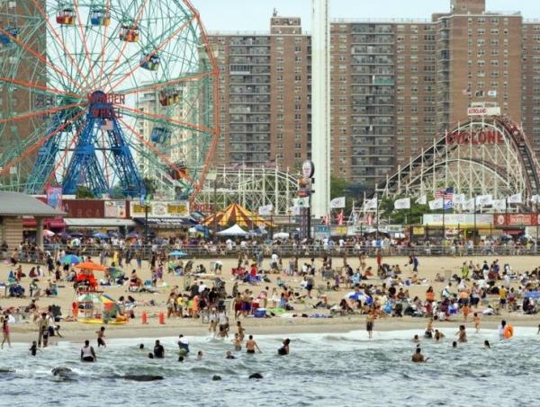 Pulau Coney di Brooklyn, New York menjadi resor swasta pada 1820-an. Pantai ini tidak dibuka untuk umum sampai 1923. The Cyclone, sebuah roller coaster kayu bersejarah yang telah memikat pengunjung sejak debutnya pada 1927, dan Nathan's Famous hot dogs hanya salah satu papan nama Brooklyn's Coney Island yang menjadi ikon di sini.