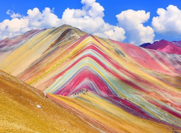 Gunung Ausangate mendapatkan julukan Rainbow Mountain karena berwarna-warni. Gunung yang terletak di Pegunungan Andes di Peru ini memiiki garis mulai dari turquoise hingga lavender. Tapi penampilan yang diciptakan oleh pelapukan dan mineralogi ini bukanlah satu-satunya hal mistis tentang gunung ini. Gunung Ausangate juga sulit dicapai. Anda harus mendaki beberapa hari untuk mencapai puncaknya. Situs ini merupakan tempat ibadah sehari-hari bagi penduduk setempat.