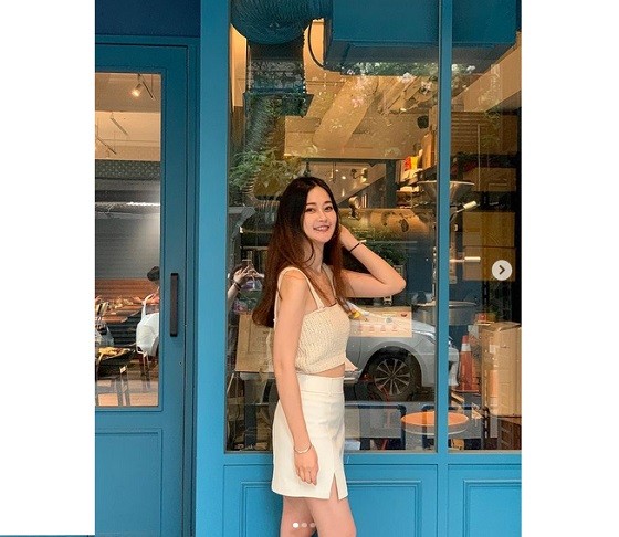 Bukan hanya cantik alami, Jasmine juga memiliki bentuk tubuh yang ramping. Penampilannya sangat pas saat dia mengunjungi resto untuk ngopi. Dia mengenakan tangtop krem dengan rok putih.