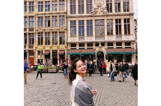 Bekerja sebagai pramugari, tidak heran jika Jasmine sering jalan-jalan ke luar negeri. Dia berpose sambil tersenyum manis.