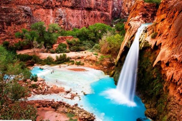 Air terjun yang menakjubkan dengan perairan biru-hijau ini dapat ditemukan di Reservasi Indian Havasupai di dalam Havasu Canyon di Arizona. Setiap tahun, Air Terjun Havasu yang spektakuler ini menarik ribuan pengunjung.