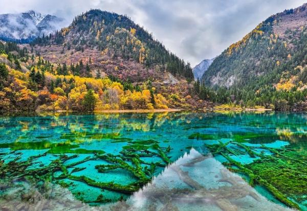 Five Flower Lake atau dikenal dengan Danau Wuhua ini merupakan salah satu tempat yang menjadi daya tarik wisatawan. Tempat ini dikategorikan sebagai salah satu danau terindah di dunia. Walaupun ada legenda mengatakan danau tersebut adalah pecahan cermin rusak yang dijatuhkan oleh dewi. Apa pun yang sebenarnya, air yang berwarna biru dan memesona ini membuat semua mata tertuju pada Five Flower Lake. Air yang sangat jernih ini membuat bayangan terlihat di air.