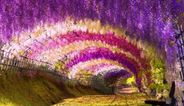 Taman Kawachi Wisteria Jepang terletak di tempat terpencil di perbukitan Fukuoka Prefecture. Bunga di sana mekar setelah dua tahun pada bulan April-Mei dan musim gugur yang disebut "maple leaf season". Dengan mayoritas warna ungu yang mendominasi dan pohon dengan bunga berwarna putih menjadikan Wisteria Gardens menjadi tempat wisata yang sangat indah.