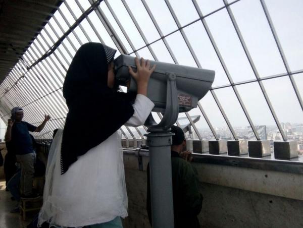 Di Puncak Monas terdapat empat teleskop yang dapat Anda gunakan. Anda dapat berfoto saat Anda sedang menggunakan teleskop. Foto Anda pasti akan terlihat keren saat menggunakan teleskop.