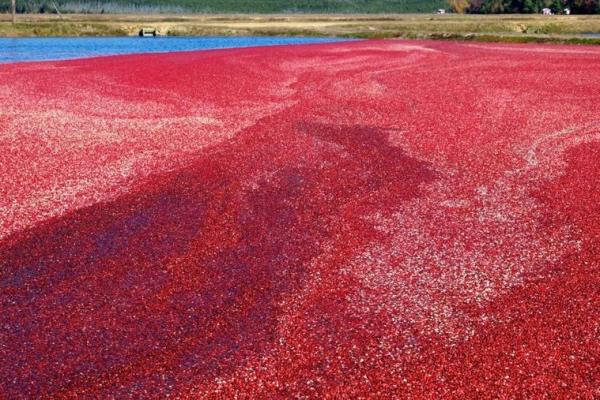 The Cranberry Bogs di New Jersey terlihat seperti lautan merah yang indah. Buah ini panen di antara pertengahan September hingga pertengahan November setiap tahun. Pemandangannya menjadi salah satu destinasi yang dapat dilihat oleh pengunjung. Tur Bogs Cranberry ditawarkan untuk melihat semuanya dari dekat.