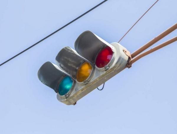Lampu lalu lintas berwarna biru