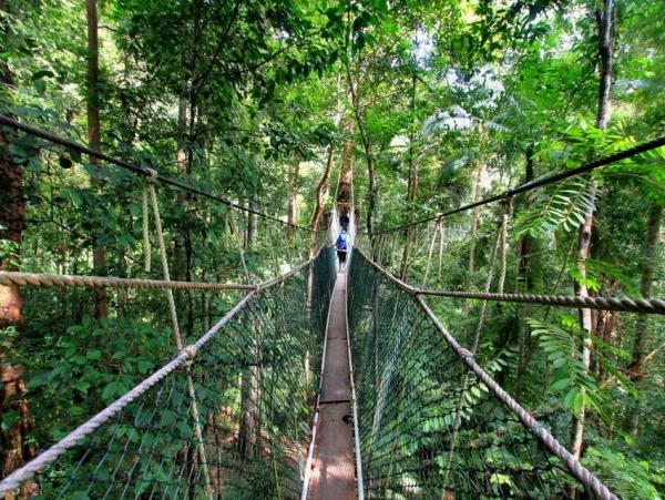 Salah satu hutan hujan tertua di dunia adalah Taman Negara di Malaysia, yang berusia 130 juta tahun. Kanopi jalan setinggi 45 mil (saat ini ditutup untuk pemeliharaan) menawarkan pemandangan hutan yang menakjubkan. Anda dapat melakukan perjalanan melalui pepohonan dengan berjalan kaki atau mengamati pemandangan di atas kapal pesiar sungai.