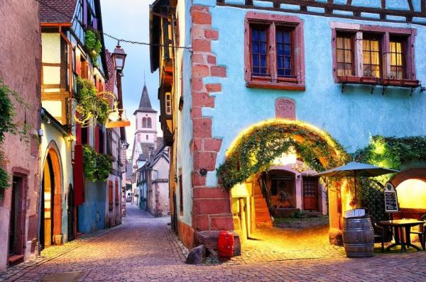 Bagian terkenal dari daerah penghasil anggur Alsace, Riquewihr adalah desa tercantik di kawasan ini. Di sana terdapat tembok pertahanan abad pertengahan yang masih utuh, dan banyak rumah setengah kayu yang mengelilingi jalan-jalan sempit berasal dari abad 16.