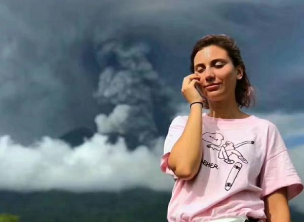 Melihat foto ini, tentunya Anda tidak akan percaya. Anda bisa melihat ekspresi turis ini yang berani berfoto dengan latar belakang Gunung Agung. Padahal, Gunung yang berada di belakangnya seperti ingin meledak.